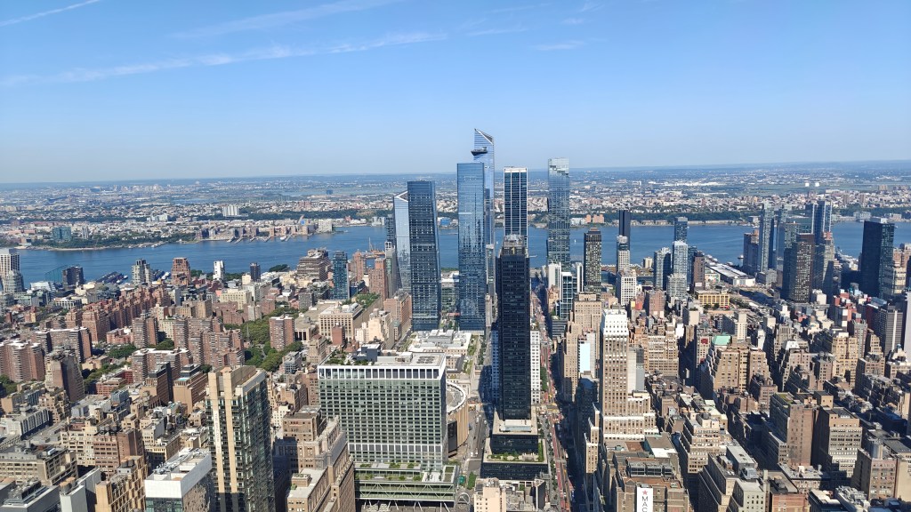 Next, we took the elevator to the 86th-floor open-air deck, which was crowded but worth the effort. We had to wait to find a good spot for photos, but the views of Manhattan from this world-famous building were absolutely unforgettable. The 102nd floor was also an option with an upgraded ticket, but we opted not to visit it this time.