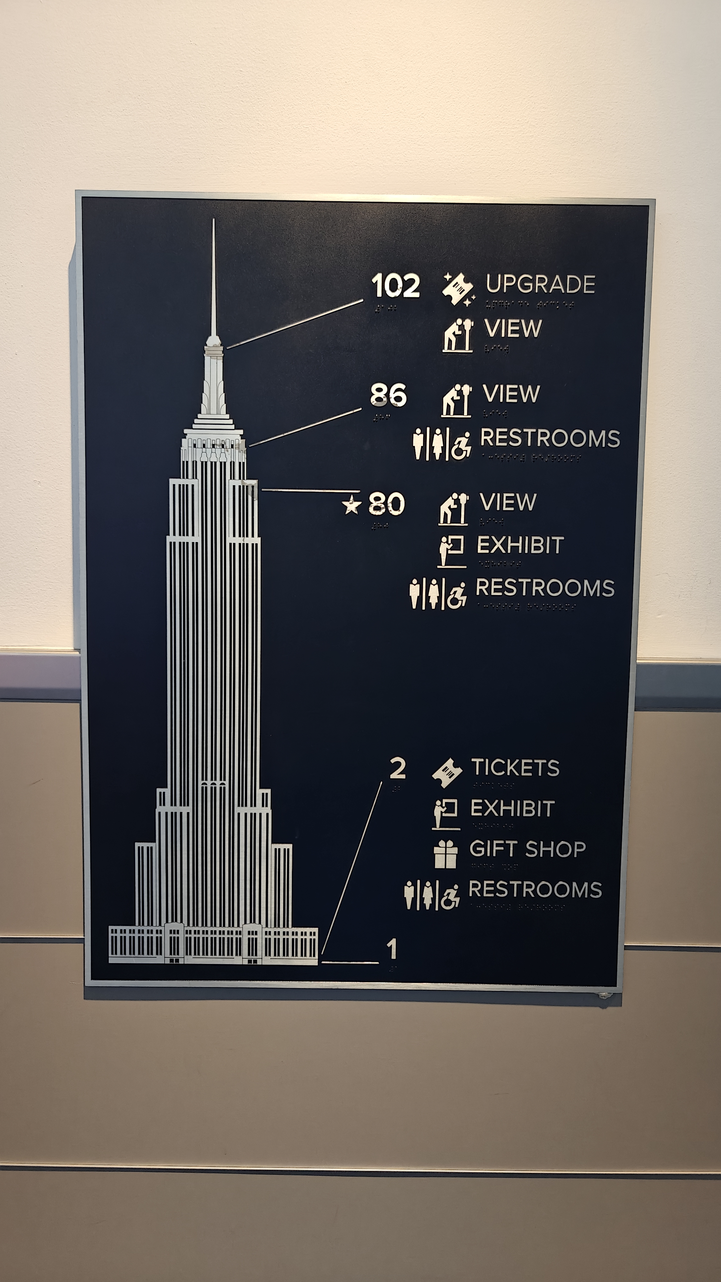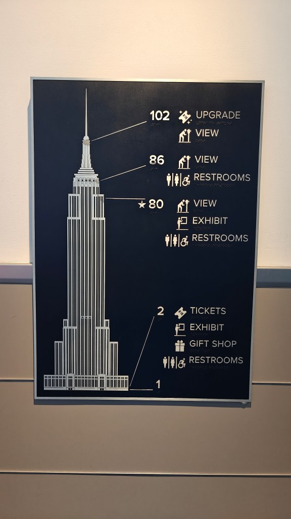 Finally, we reached the 80th-floor indoor observation deck. The sky was clear, and the 360-degree views of New York City were breathtaking. Helpful markers pointed out major landmarks visible from each side.
