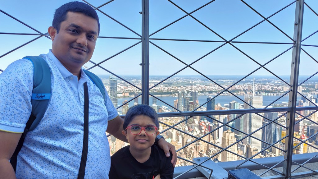 The Empire State Building was at the very top of Yuven’s New York bucket list, so we decided to begin our day here. Since the weather can affect the experience, we checked the forecast before booking our tickets. Our slot was at 9:15 a.m., so we arrived a little early, around 8:45 a.m., and joined the queue outside.