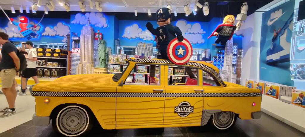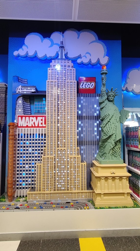 Afterward, we walked around Rockefeller Center and then made our way to the famous LEGO Store. Spread over two floors, it felt like a mini-LEGO wonderland. From the Statue of Liberty and Empire State Building to Marvel characters and the classic NYC yellow cab, everything was built with LEGO bricks. The displays were impressive, and the store had a vibrant energy.
